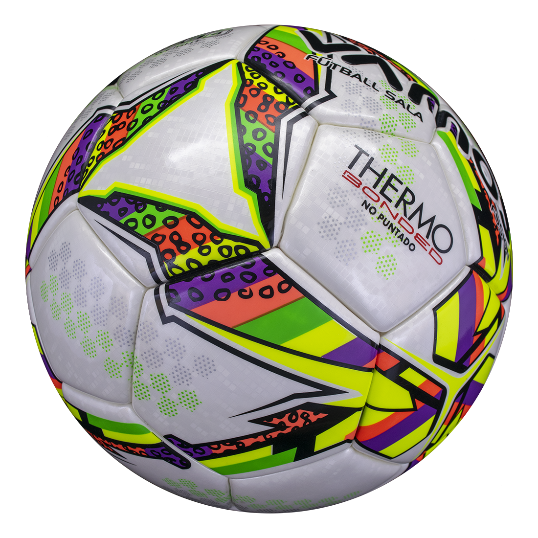 Профессиональный футзальный мяч Vamos Fusion с ярким дизайном и переливающейся текстурированной поверхностью. Соответствует стандартам игры в футзал и одобрен Перуанской Футбольной Ассоциацией Футзала.