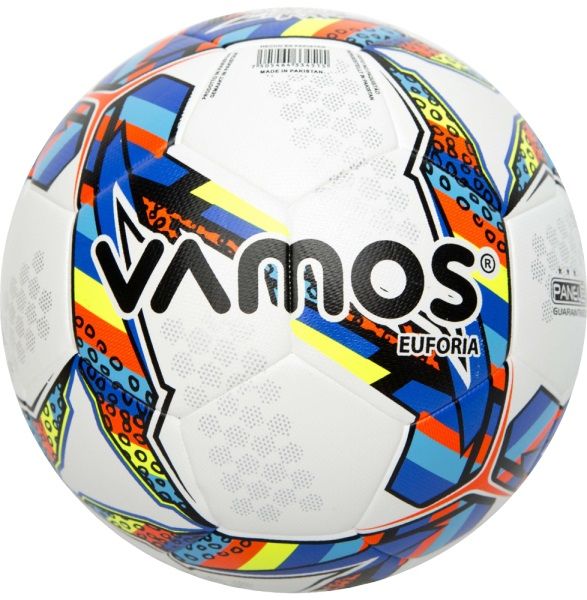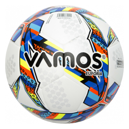 Матчевый мяч VAMOS EUFORIA создан по новейшей технологии HYBRID TECHNOLOGY, сшитый вручную изнутри и покрытый панелями соединенными методом термосклейки. 32-х панельная конструкция мяча сочетает в себе достижение современных технологий материала с износостойкими свойствами. Благодаря запаянным швам, обеспечит влагоотталкивающий эффект, что позволит использовать мяч в любых погодных условиях. Может использоваться на траве и жестком грунте. Бутиловая камера Премиум класса надолго сохраняет давление.