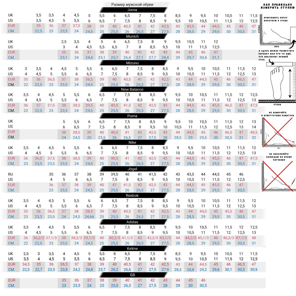 Размерная сетка мужской обуви Размерная сетка женской обуви Размерная сетка детской обуви Размерная сетка мужской одежды Размерная сетка детской одежды Таблица для выбора размера вратарских перчаток Ориентировочная сетка для наколенников и налокотников Поделиться